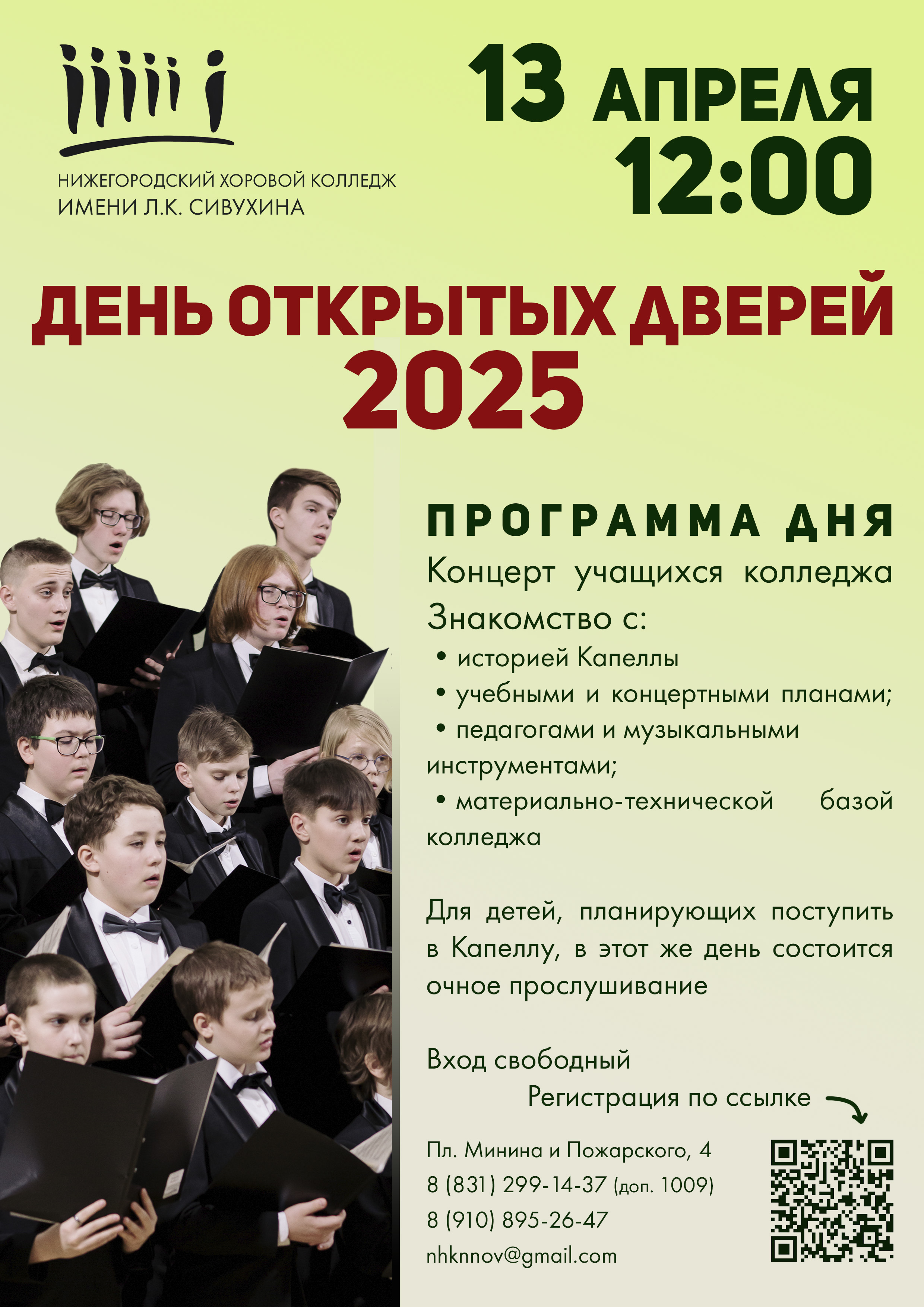 Для детей, планирующих поступить в Капеллу, в этот же день состоится очное прослушивание